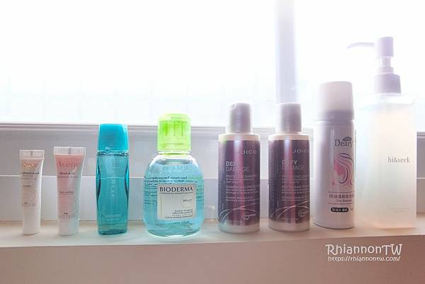 雅漾Avene醒膚能量眼霜、雅漾Avene醒膚能量精華、美伊娜多MENARD的beauness化妝水A、貝膚黛瑪BIODERMA的平衡控油潔膚液、JOICO鍊鍵強化鎖色潔髮乳、JOICO鍊鍵強化鎖色順效髮霜、媞爾妮Deary控油蓬鬆乾洗髮霧(正貨)、和靚止制造hi&seek的鏡顏防護洗面露(正貨)